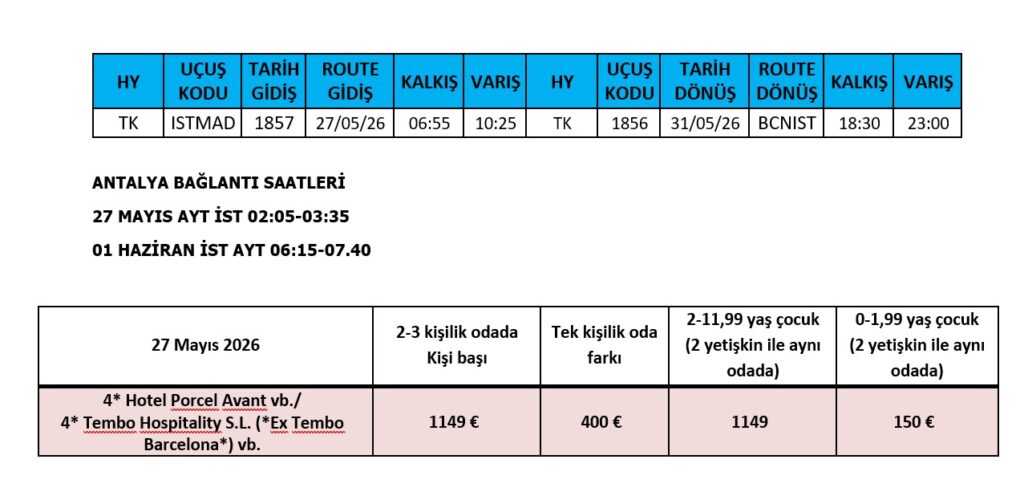 BARCELONA – İSTANBUL(IST)-ANTALYA