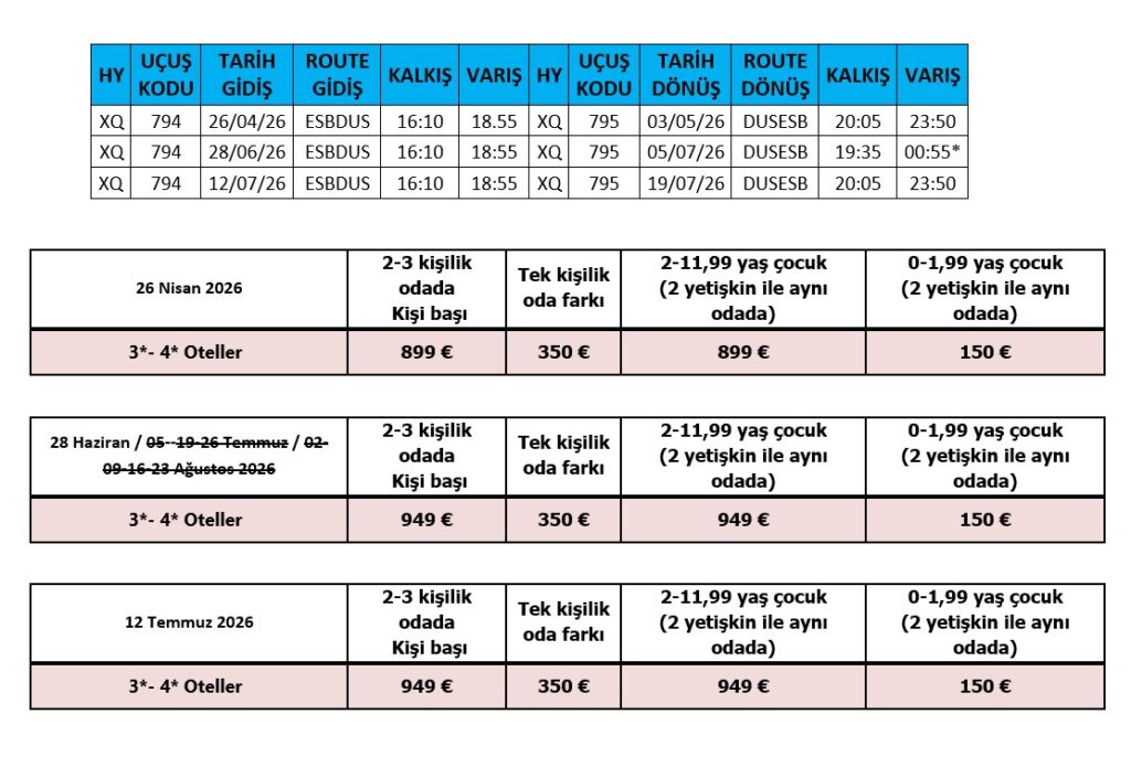 Sabah Kahvaltısı: Uçak yolculuğu esnasında alınacaktır.