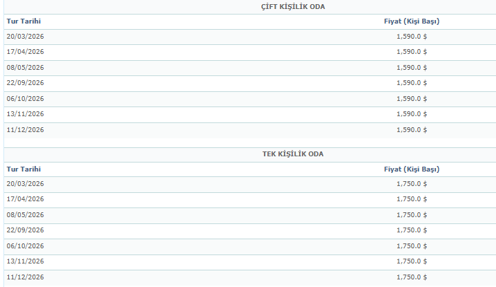 - Tüm paket programlarımızdaki fiyatlarımız minimum 10 kişiye kadar kontenjanlar ile sınırlı olup üzeri kişi sayısı gruplarınız için fiyat artışı olabilir. Lütfen fiyat bilgisi sorunuz.