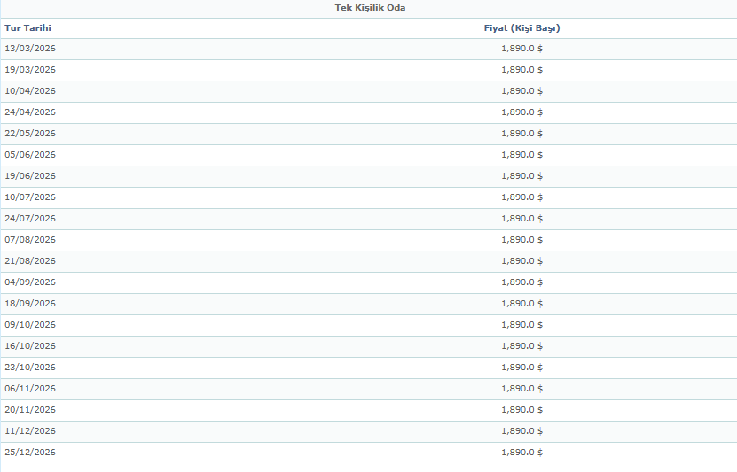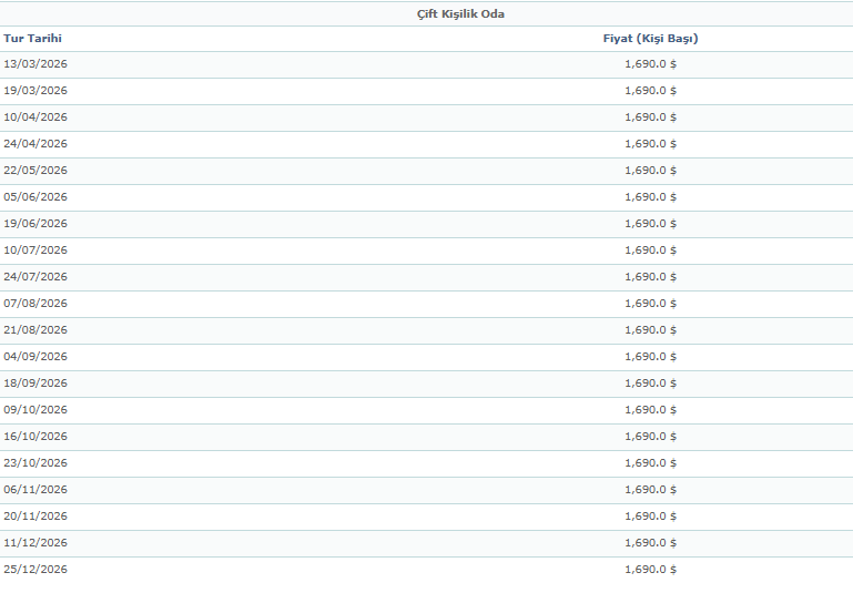 • Fiyatlara tüm uçuş, konaklama, transfer ve turlar dahildir (Hizmetler kategorisinde belirtilen "Ücrete Dahil Olan Hizmetler" listesine göre).